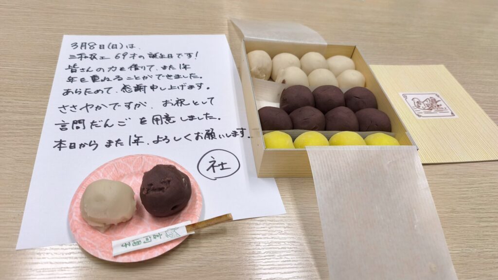 そのお団子を社員皆でいただきながら、改めて「長く愛され続けること」の尊さを分かち合いました。