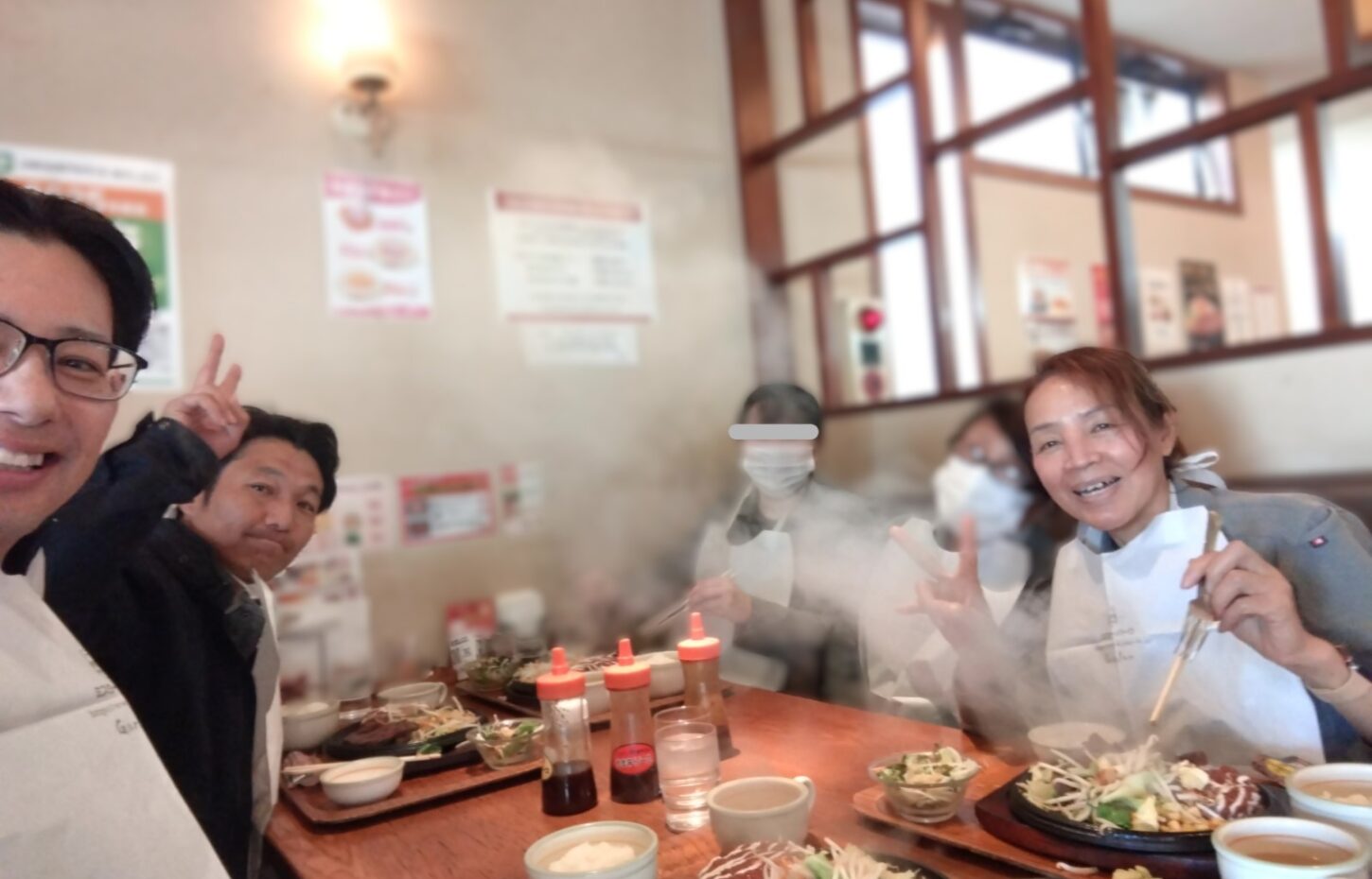 ハンバーグやステーキを囲んで「おいしい!」の声が飛び交い、活気ある時間に。