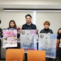 2026シーズンのポスターとタペストリーをお持ちいただき、社長とともに記念撮影もさせていただきました。
